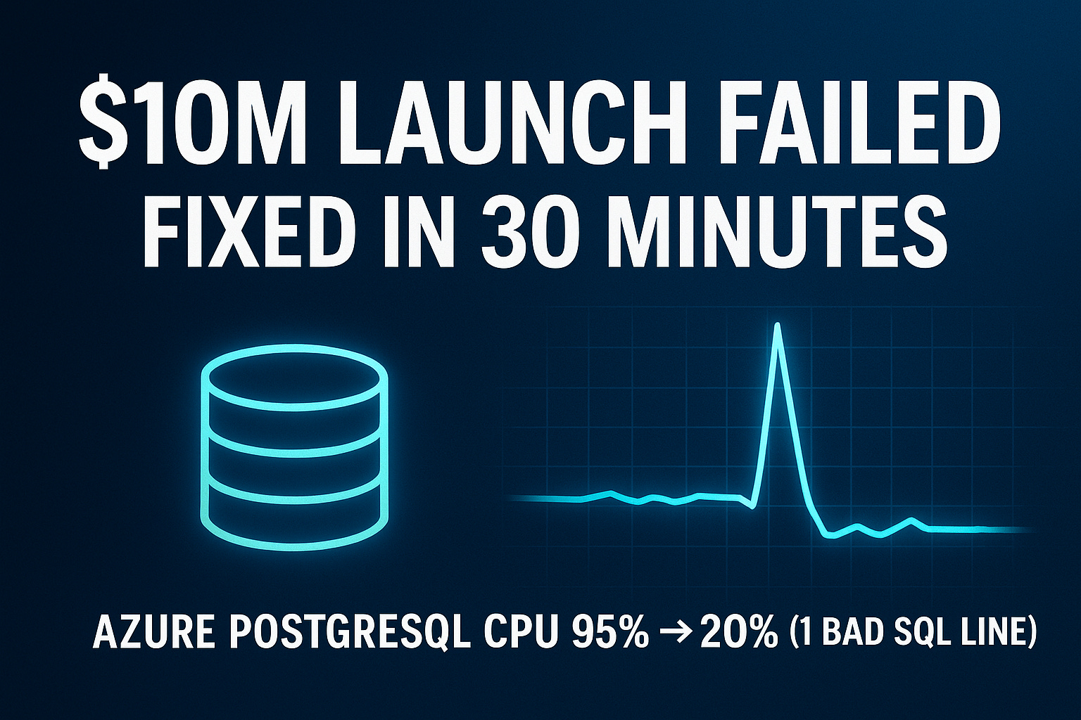Learn how a single inefficient SQL query caused a 95% CPU spike on Azure PostgreSQL and how we fixed it in 30 minutes.